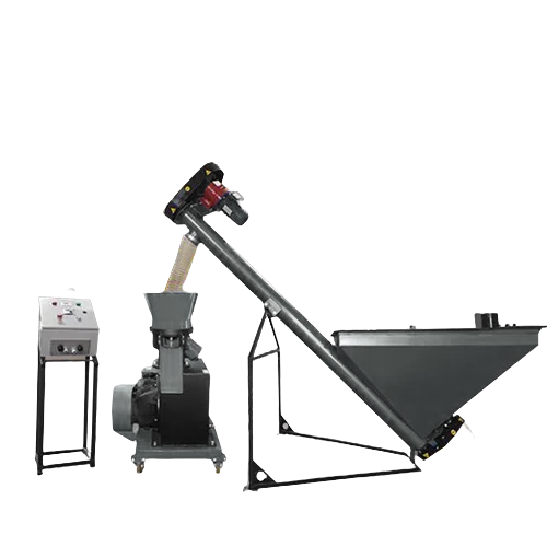 • Podajnik ślimakowy PS-200 służy do płynnego podawania surowców do peleciarki. Wyposażony w falownik do regulacji obrotów ślimaka oraz magnesy neodymowe. Pojemność zbiornika 0,2 m³. Moc silnika 1.5 kW lub w drugiej opcji podajnik ślimakowy.