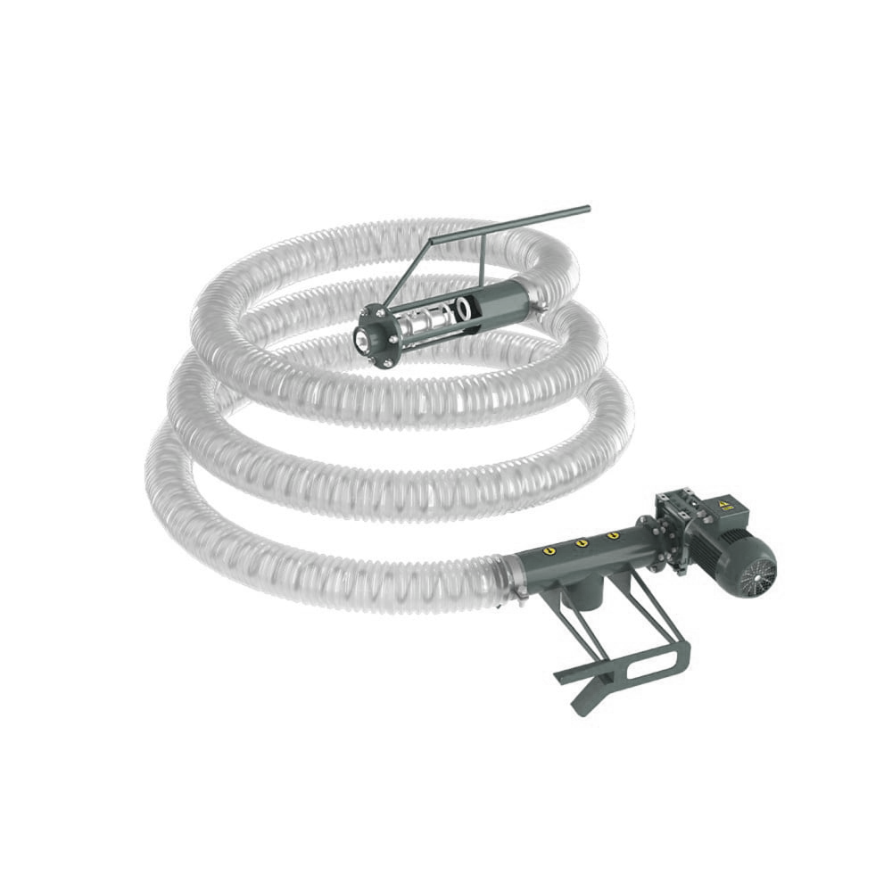 Ślimak wykonany ze stali sprężynowej obraca się w elastycznej rurze PVC o średnicy 127 mm, zapewniając cichą i bezpyłową pracę.
