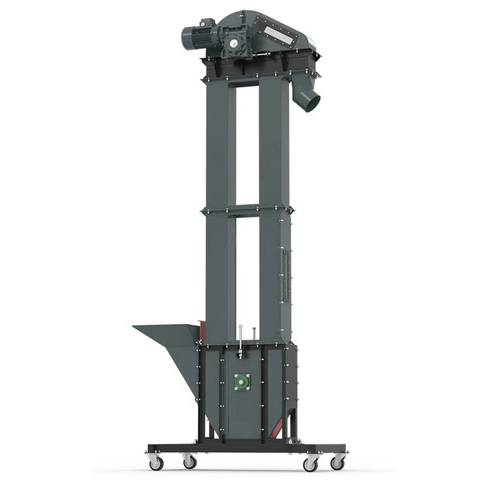 Urządzenie transportuje materiał w kierunku pionowym przy użyciu taśmy kubełkowej z metalowymi lub tworzywowymi kubełkami, napędzanej przez silnik elektryczny.