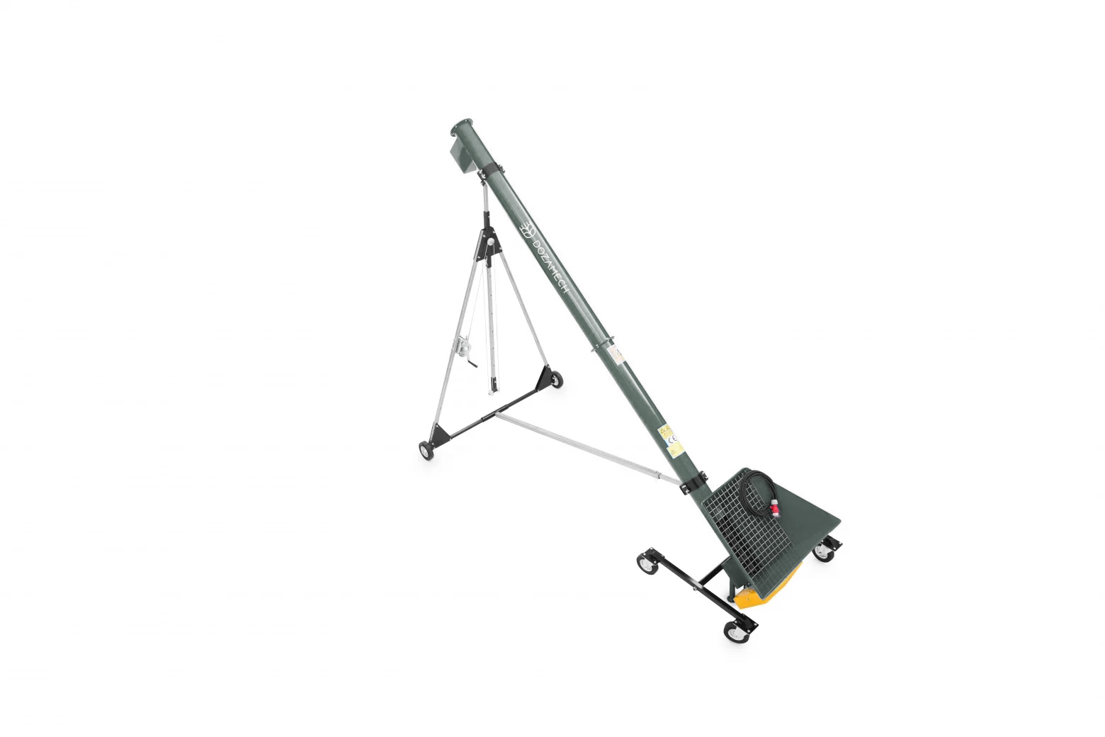 Konstrukcja o długości 6 m umożliwia odprowadzenie ziarna na odległość wystarczającą do formowania pryzm lub załadunku kolejnych urządzeń, zachowując jednocześnie łatwość manewrowania. Standardowo model ten wyposażony jest w podwozie ułatwiające transport (dwa koła przy koszu), a opcjonalnie dostępny jest 4-kołowy wózek skrętny z hamulcami, zwiększający mobilność zestawu.