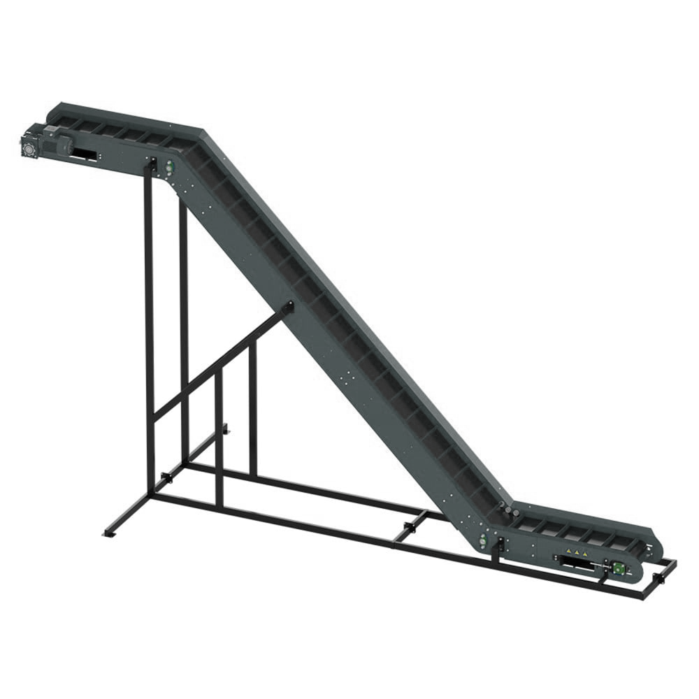 Konstrukcja zgarniakowa (z przegrodami na taśmie) umożliwia przenoszenie materiału pod znacznym kątem, nawet do 45°.